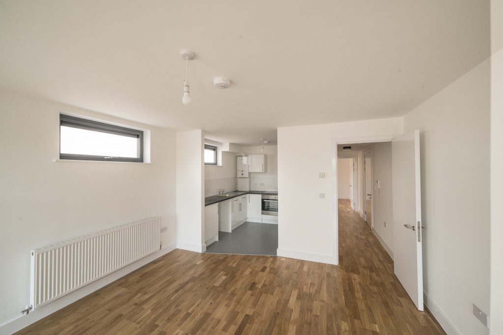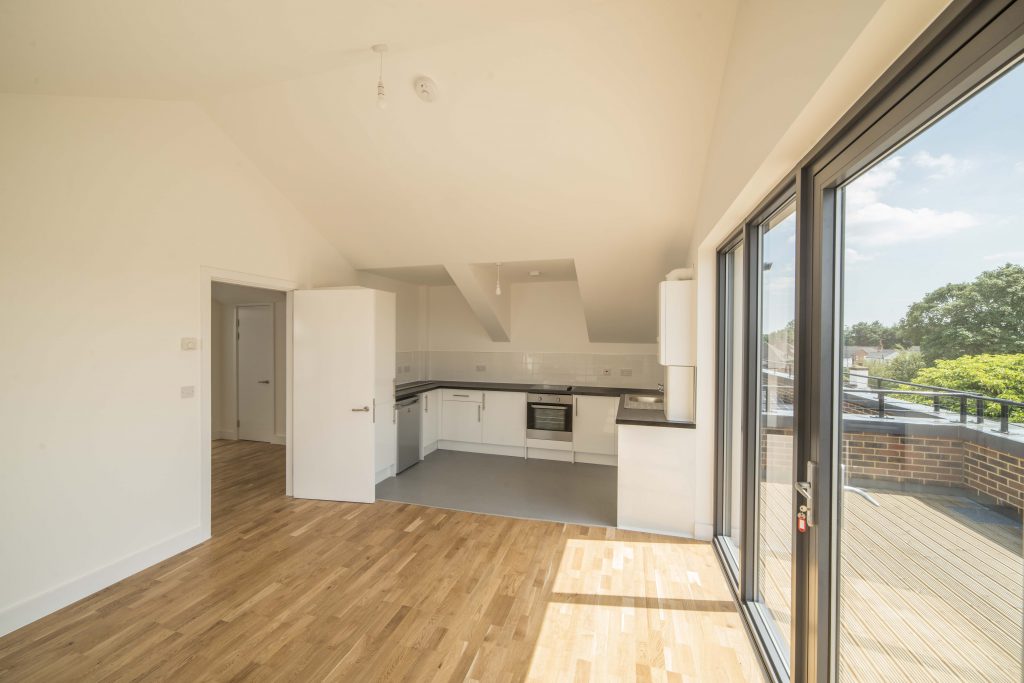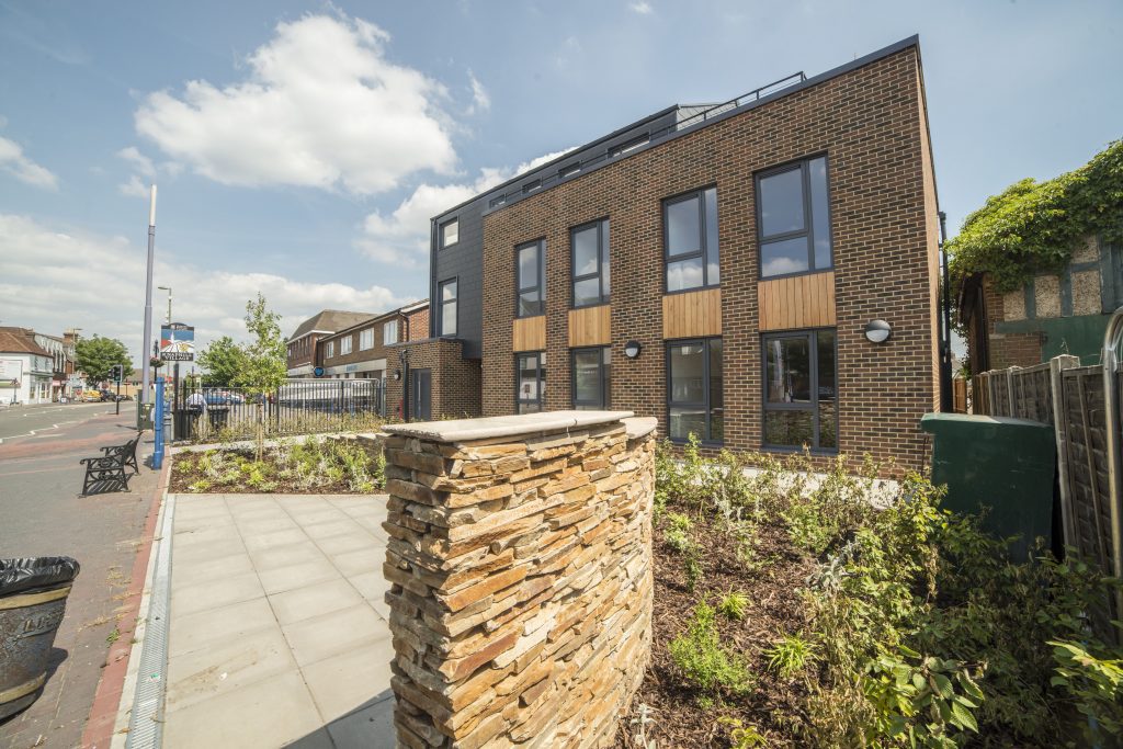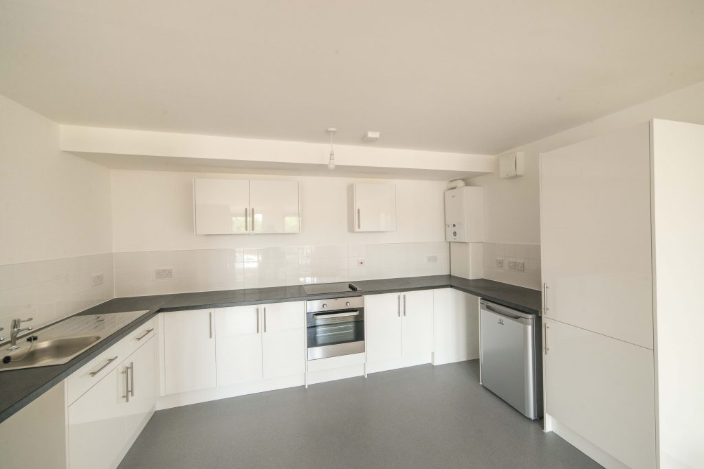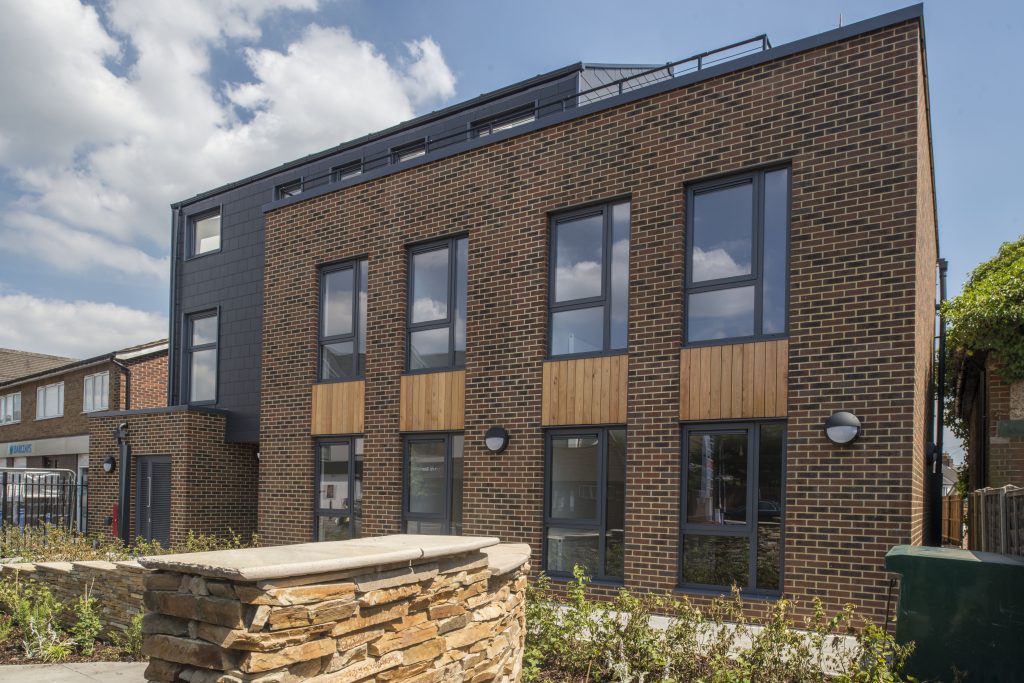 The 21 modules were installed in just four days and provide 809m2 of accommodation space, spread over nine apartments and three floors. The flats on the first and top floor also came with an additional 100m2 of external space comprised of balconies and roof terraces, with a 20m2 green roof installed to a first-floor module. The modular bicycle and waste stores included factory fitted concrete floors, however, with the client deciding last minute that they required extra space, we constructed a traditional brick extension to give the additional storage.